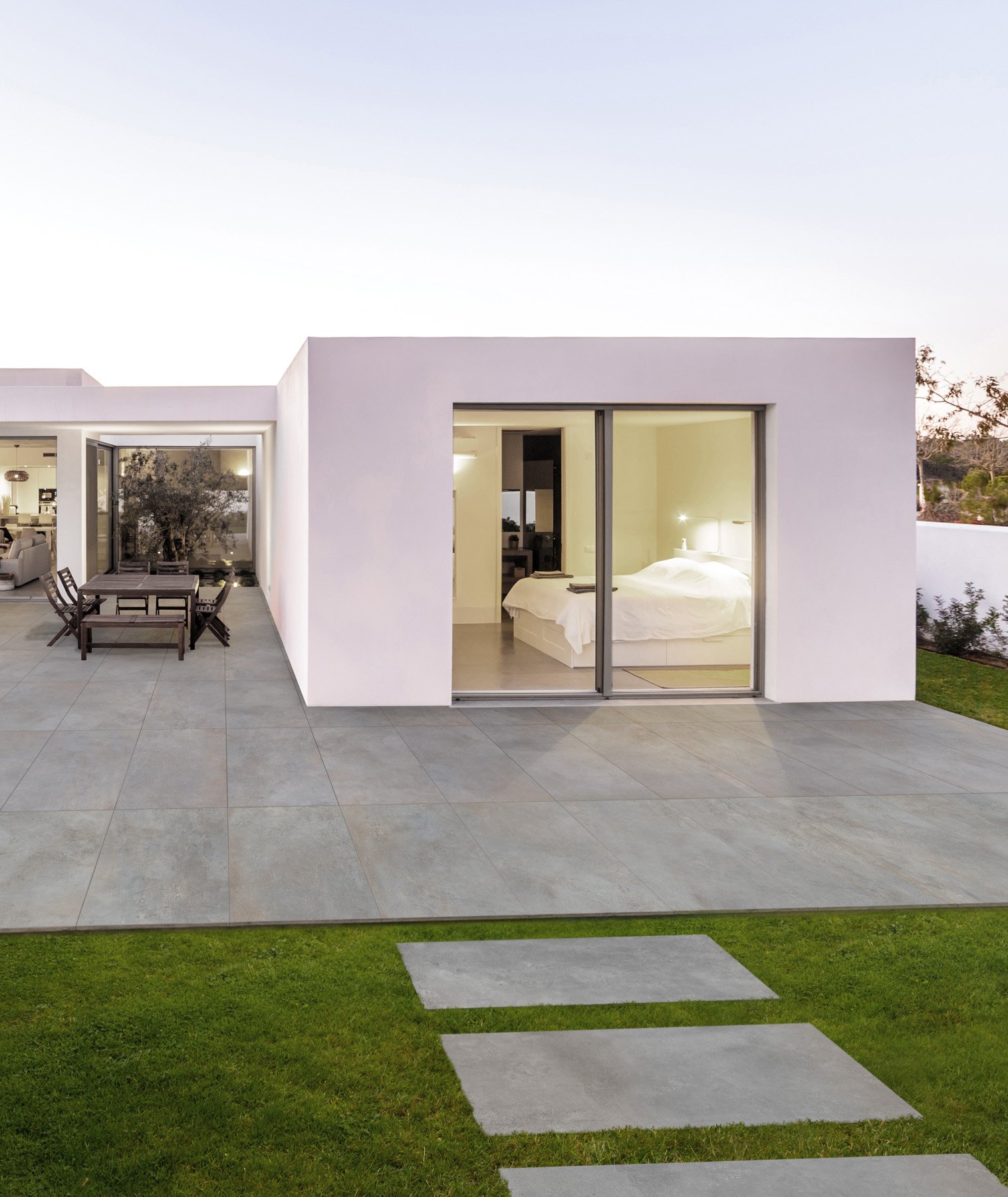 Porțelanat rectificat(pentru rosturi înguste), rezistent la îngheț, potrivită pentru pardosea cu încălzire, format XXL.